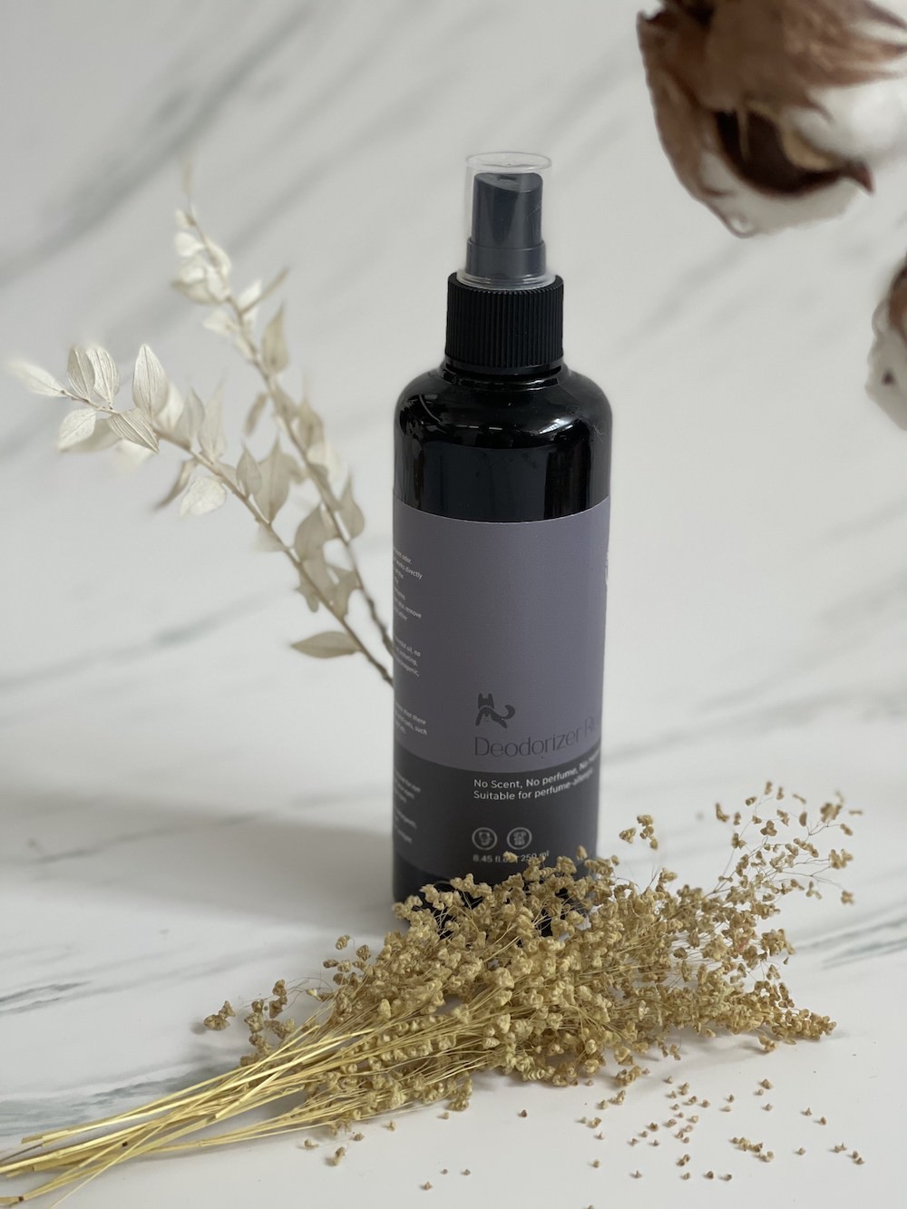 Penghilang bau apek dan menyengat. Dapat digunakan pada lantai akibat bekas pee atau poo, mainan, kandang, tempat tidur anabul, alat grooming, dan furniture.
